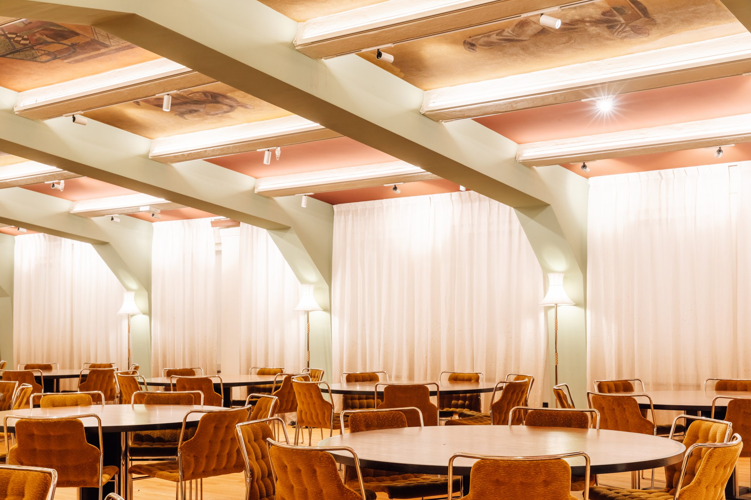 One of our heritage rooms, Krohgsalen is our most iconic space and was once the canteen for the employees of Oslo Lysverker. It takes its name from Per Krohg, the celebrated Norwegian artist, whose artwork can be found throughout the hotel including a remarkable mural that adorns the ceiling in this room. Krohgsalen is perfect for larger groups looking for a proper celebration.