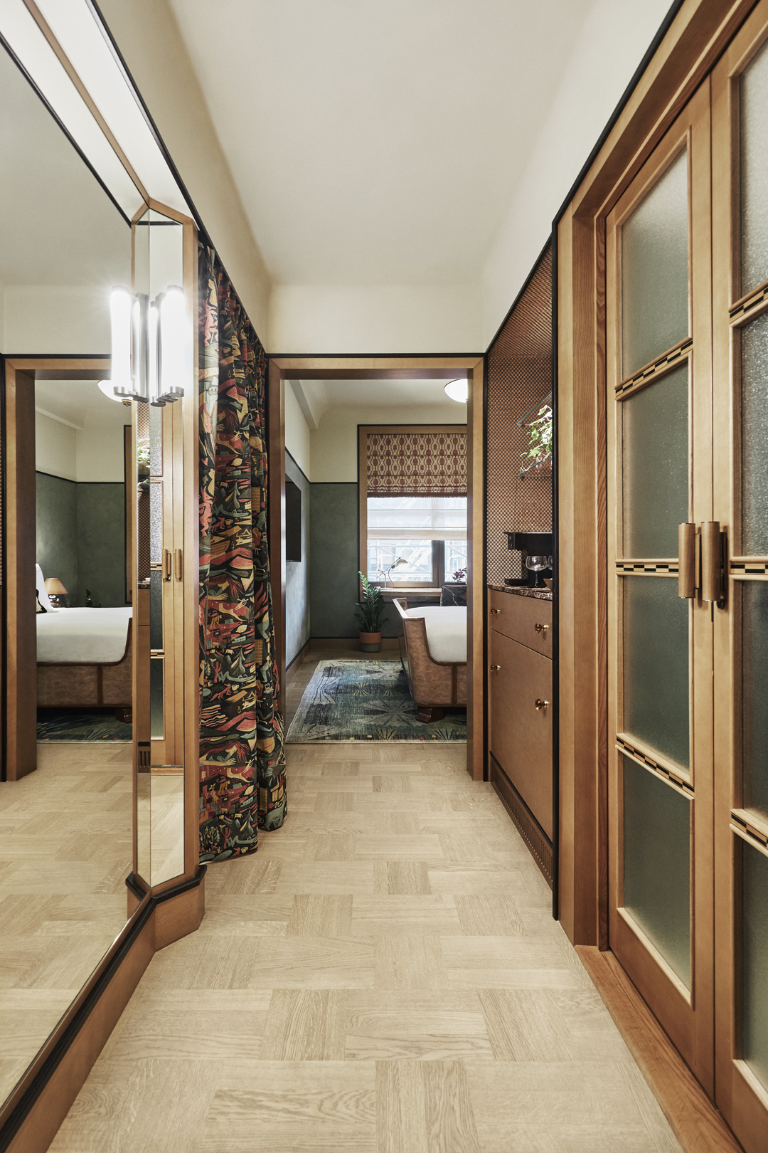 Each has a 160-180 cm bed, parquet flooring, brush-painted walls, coved ceilings, bespoke furnishings, an integrated window desk for burning the midnight oil, and a fully stocked minibar in a separate space.