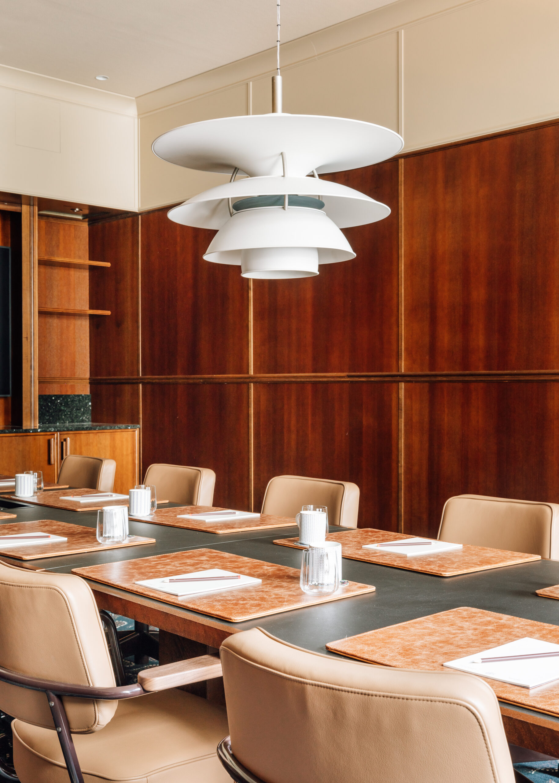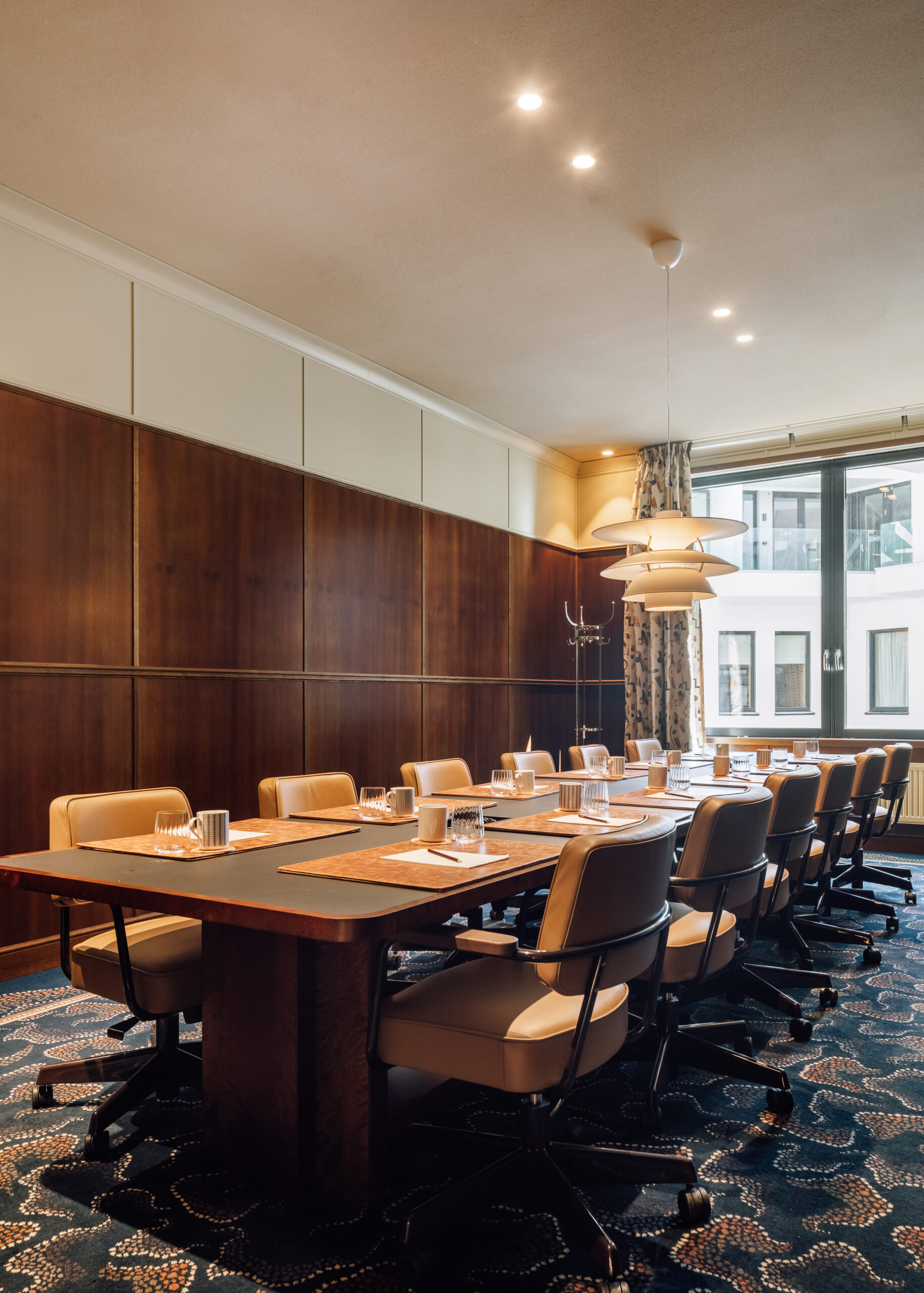 I likhet med Direktørkontoret setter veggpanelene i valnøtt en elegant ramme for innredningen. Uavhengig av hva slags møte du planlegger, har vi de teknologiske løsningene du trenger, inkludert AV-utstyr og høyhastighets-wifi.