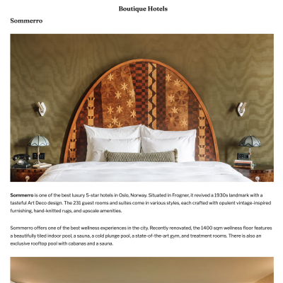Sommerro featured in Harper's Bazaar "The luxury guide to Oslo - What to see and where to stay in th...