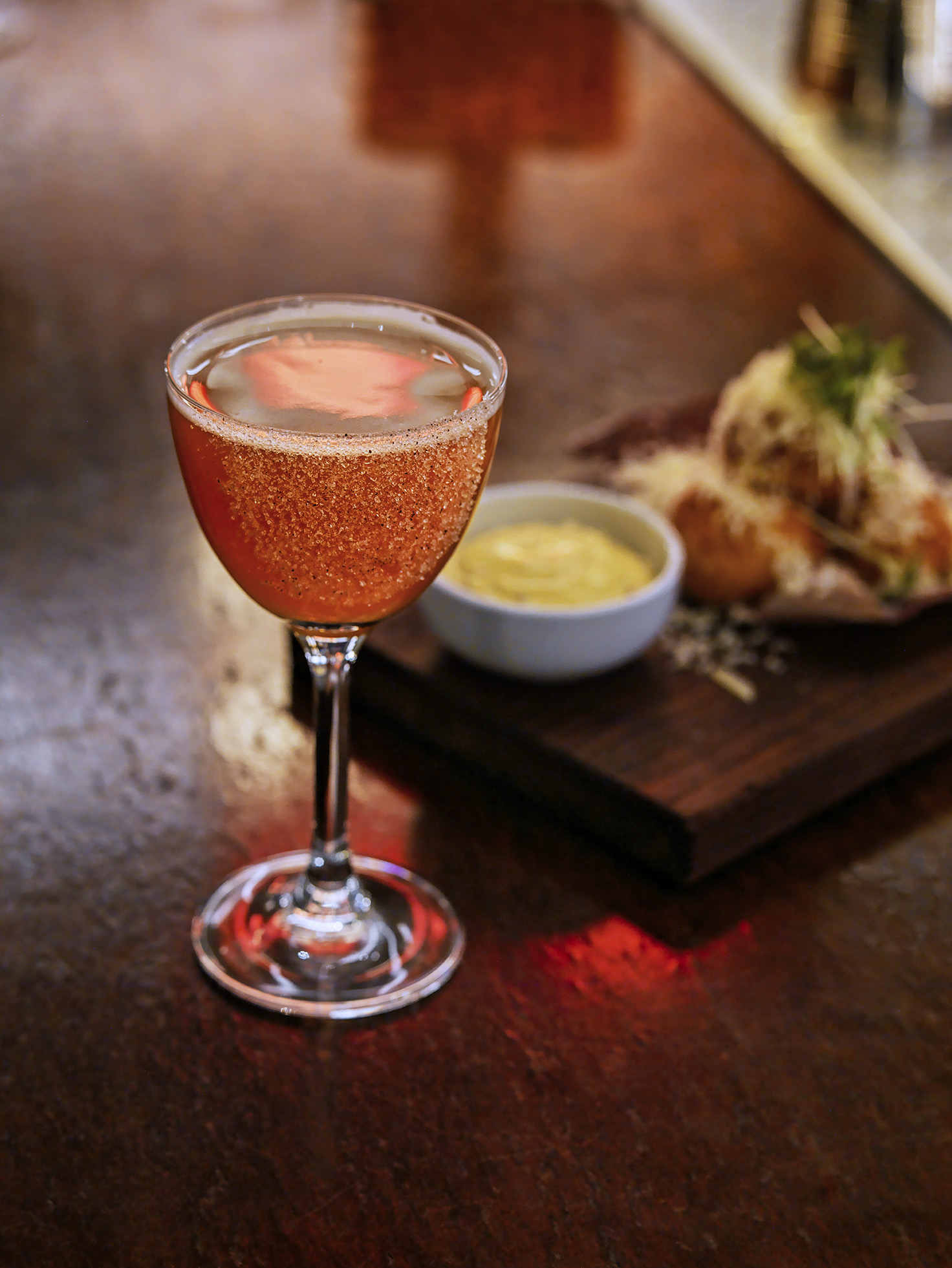 Baren, i likhet med resten av huset, er tematisk datert tilbake til den skandinaviske art deco-perioden på 1930-tallet. Med fokus på en ren og elegant servering, byr vi på en tidsreise i et cocktailglass. Vi har også et stort alkoholfritt utvalg, blant annet gjennom en egen drinkmeny inspirert av forbudstiden, slik at alle kan føle seg velkommen.